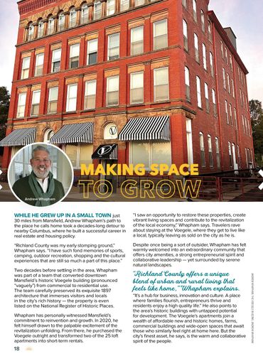 Our journey began decades ago with a passion for real estate development and a deep appreciation for the character and craftsmanship of historic spaces. From my early days growing up in nearby Wooster to my years working in Columbus in housing development and finance Mansfield has always been on my radar. In fact, I was part of the original conversion of the Voegele Building from commercial to residential use nearly 30 years ago. When the opportunity arose to make Mansfield my home and take ownership of this special property, I knew I wanted to be part of the Voegele's next chapter.